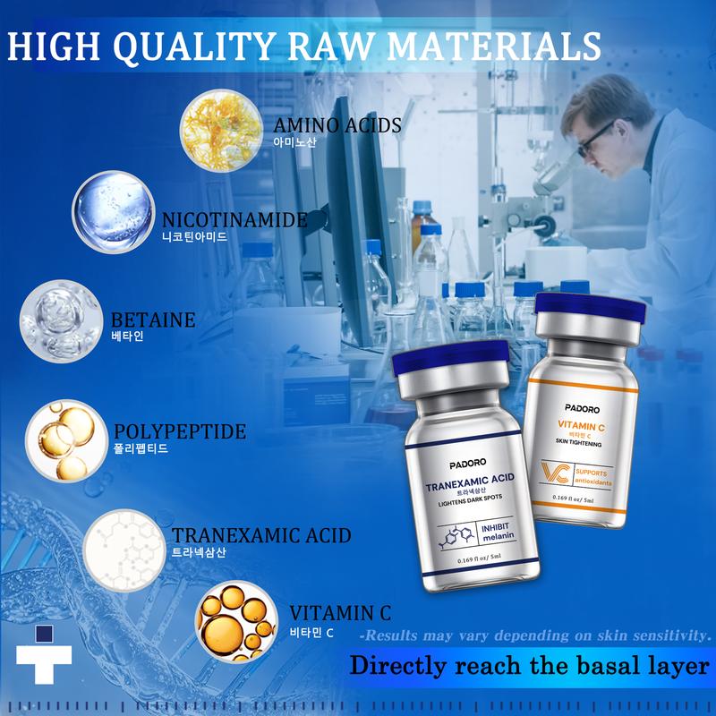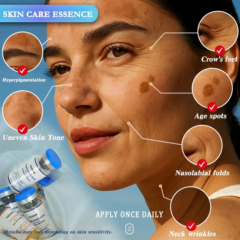 PADORO Tranexamic Acid Serum, Gold Vitamin C, Dark Spots, Pigmentation Serum, Improves the Appearance, Anti-Aging Serum, Suitable for All Skin Types, Skincare, Repairs and Comforts, Reduces Wrinkles, Moisturizes, Holiday Gift