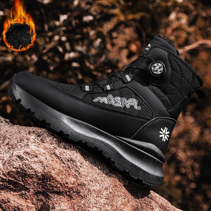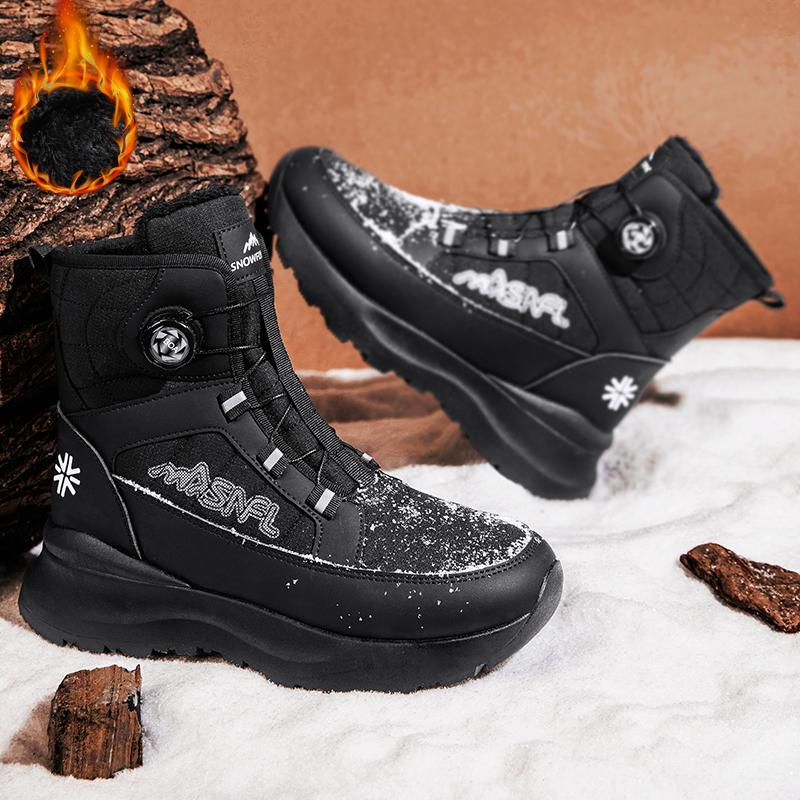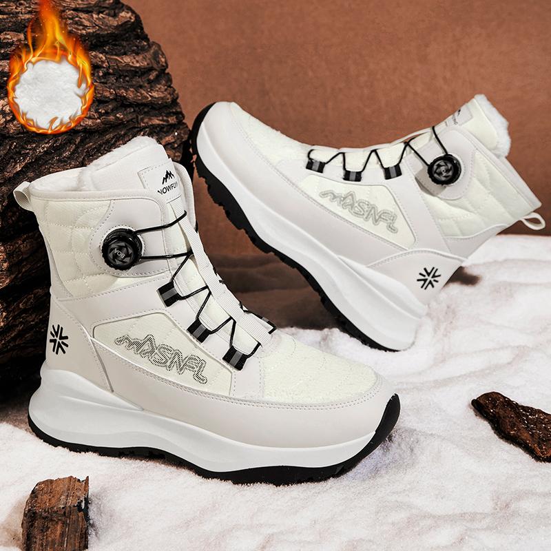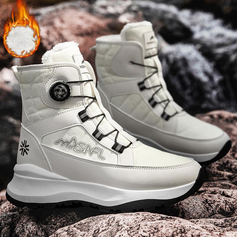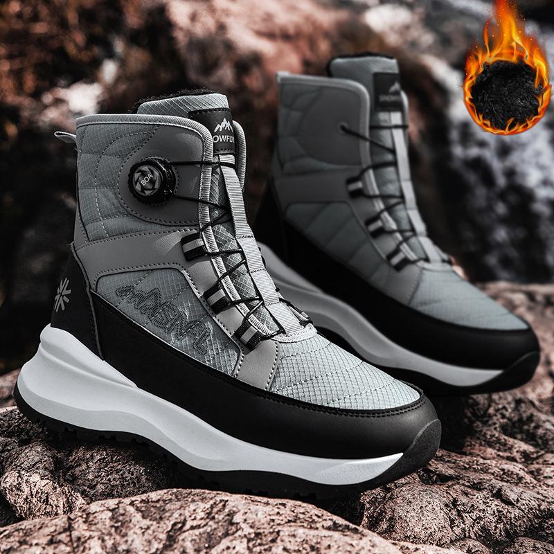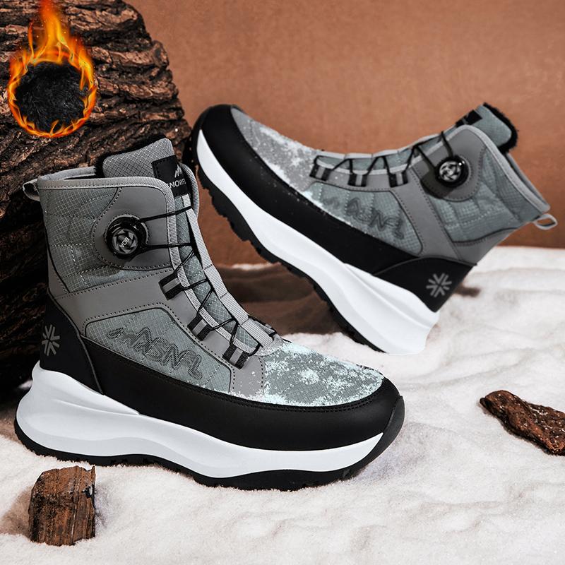 Men's Letter Print Contrast Faux Fur Snow Boots, CasualWaterproof Non-slip Ankle Boots for Outdoor Sports,Warm Shoes for Men Boy Footwear Closed Decor White