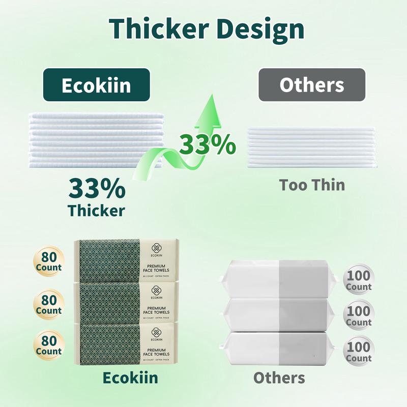 [Buy 3 Get 3 Free] Ecokiin Premium Disposable Face Towels - 80CT Each 8.6"*7.8" Extra Thick Super Absorbent Biodegradable Fragrance-Free for Sensitive Skin Makeup Removal