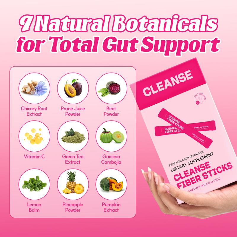 dr.blet Cleanse Fiber Sticks, Peach flavor, Support Digestive & Gut Health, Bloat Relief, Maintain Natural Fullness, Dietary Fiber, Plant-Based Ingredients, NON-GMO