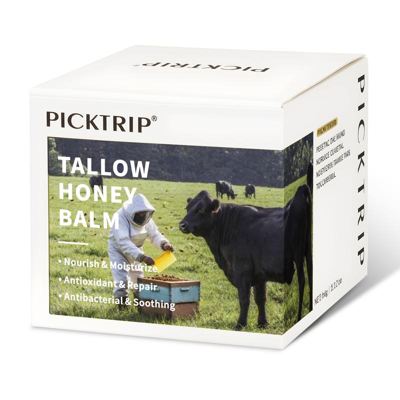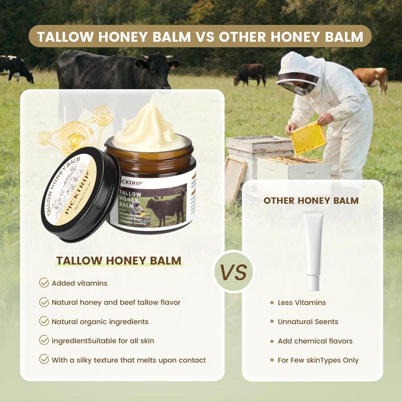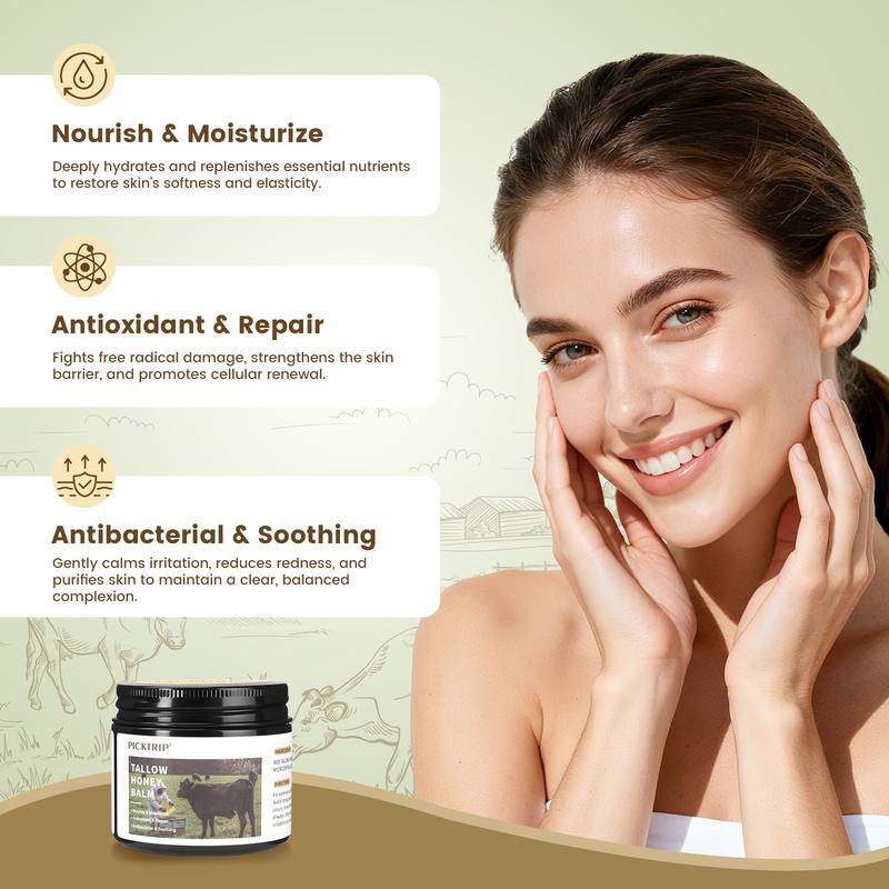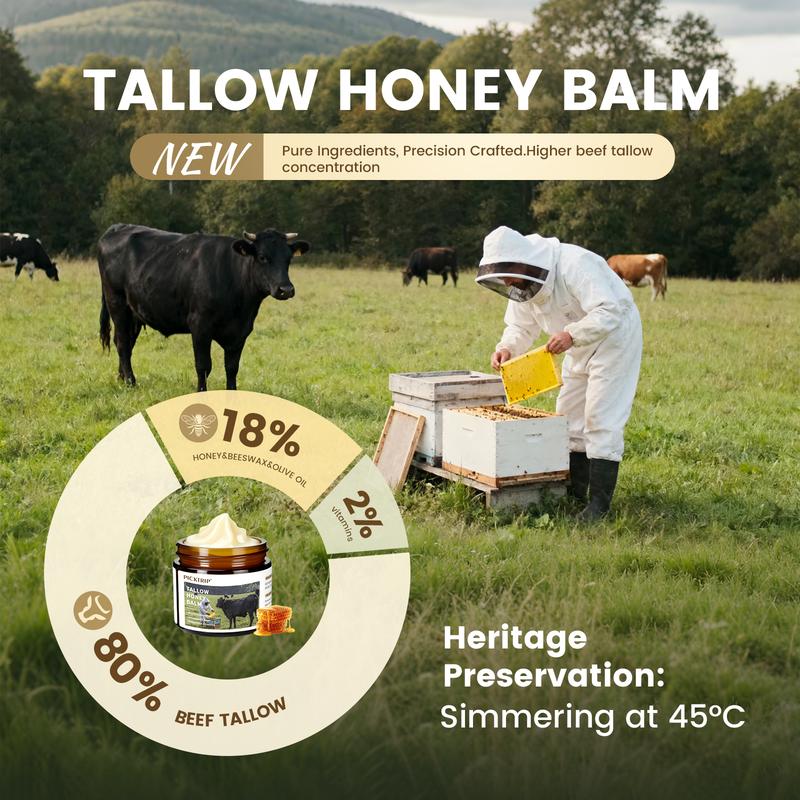 PICKTRIP Beef Tallow Honey Balm - 80% Grass-Fed Beef Tallow, 18% Honey & Beeswax, Vitamin E Moisturizer for Soft, Smooth Skin, Nourishing Comfort
