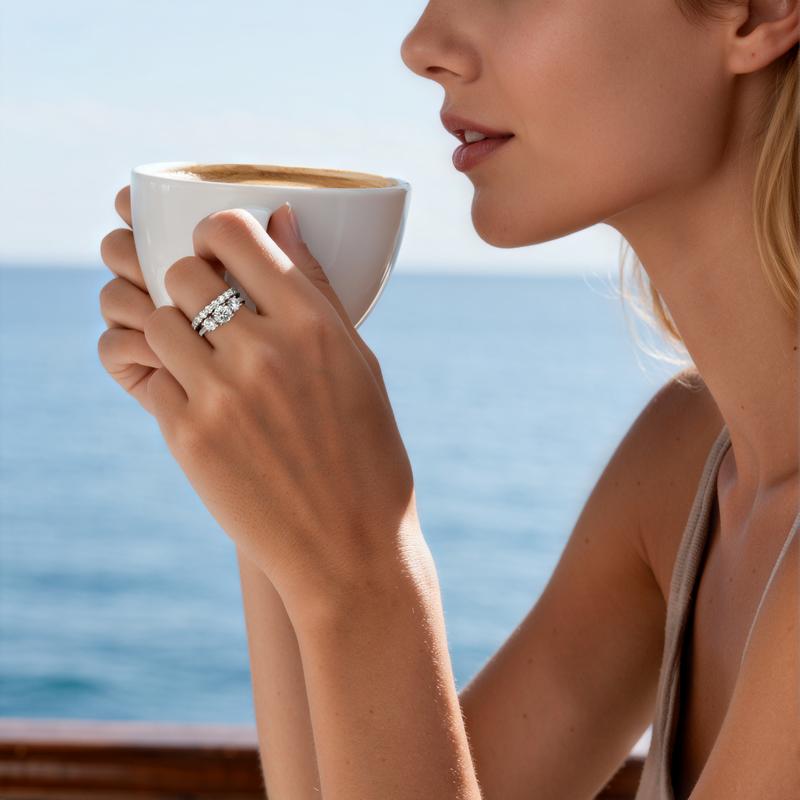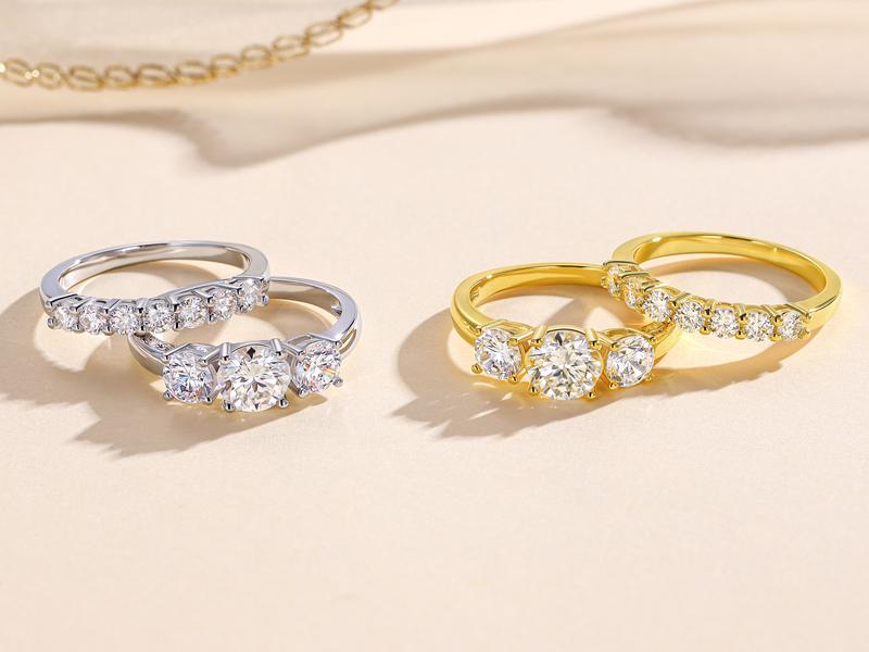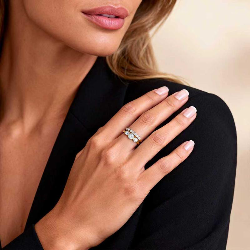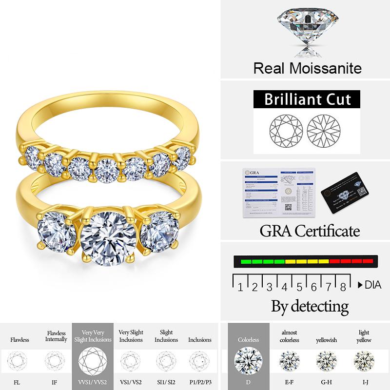CICI GEMS 1CT Trilogy Moissanite 3-Stone Ring Set Classic for Women Wedding Set D VVS1 3 Stones Stackable Band 18K Gold Plated Lab-Created Hypoallergenic Engagement Promise Anniversary Gift Fine Jewelry R1