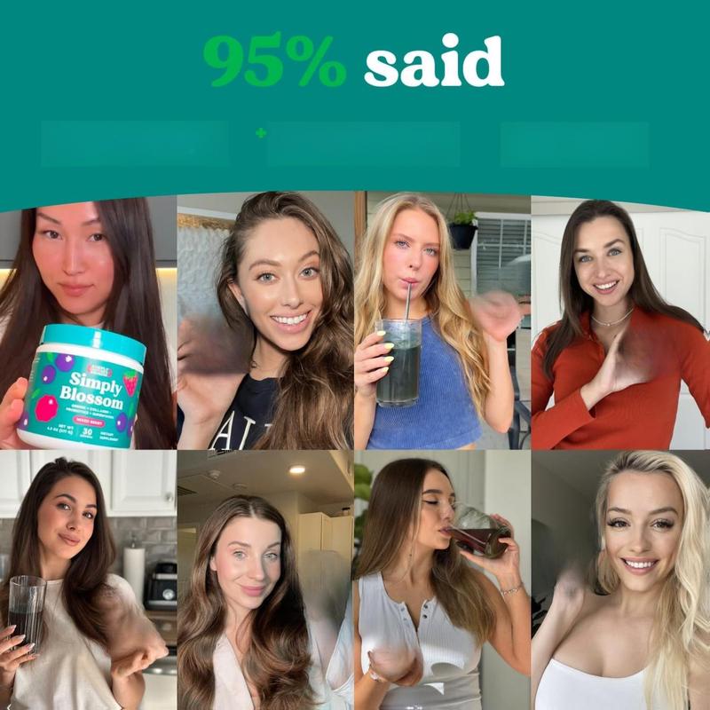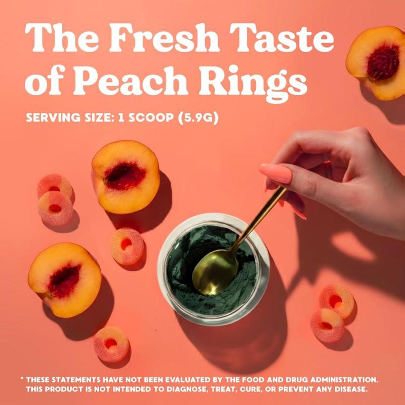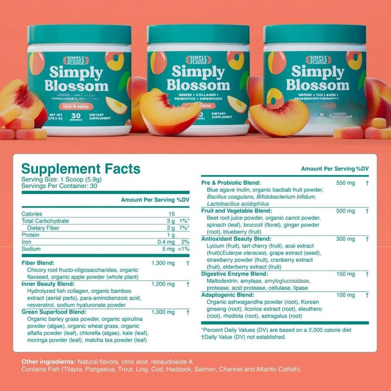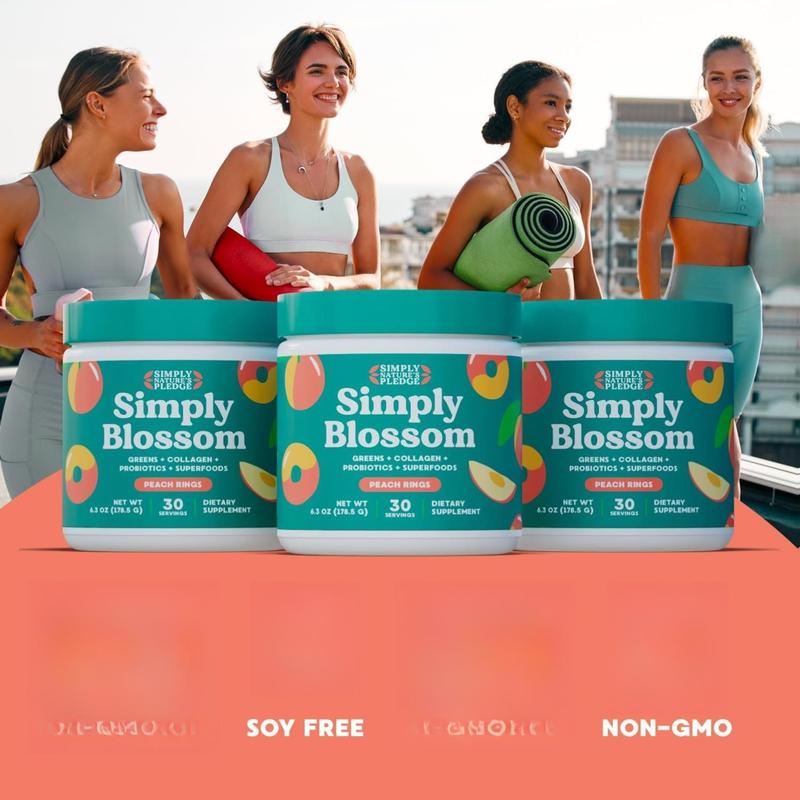 Simply Blossom Nutrition Daily Greens & Superfood Powder + Collagen + Probiotics for Women's Digestive Health & Bloating Relief. Help Your Health Bloom - 30 Day Supply - Peach Rings