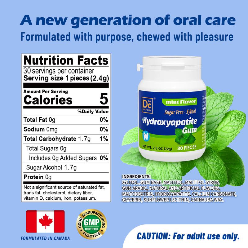 DC24 DAILY CARE Remineralizing Gum with Nano Hydroxyapatite & Xylitol , Aspartame Free , Sugar Free, Mint/Cinn