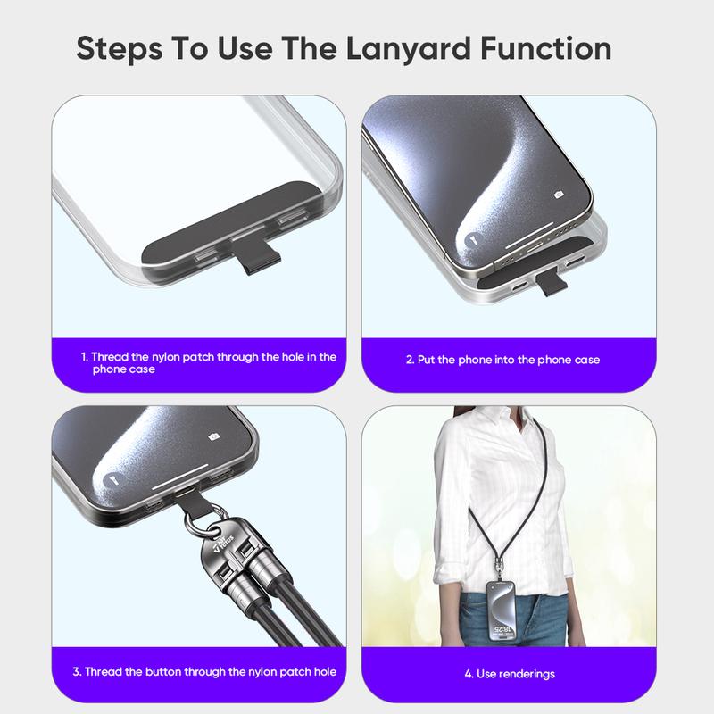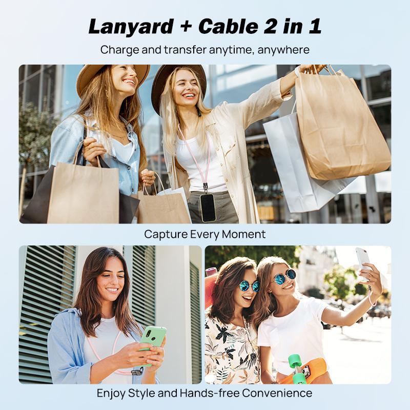 JOYTUTUS 240W USB-C Fast Charging Phone Lanyard 7mm Nylon Crossbody Wrist Strap for iPhone 16 15 Samsung Pixel Data Sync Travel Hiking
