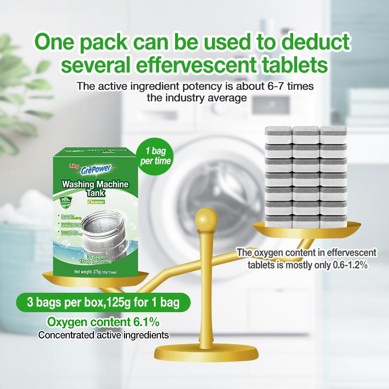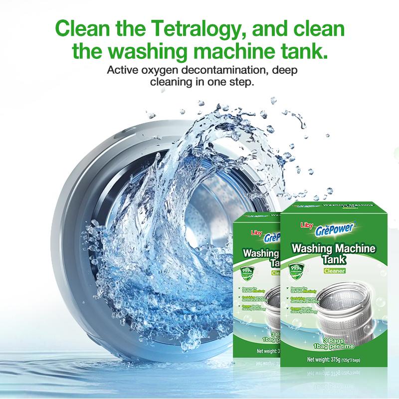Liby Washing Machine Cleaner 125g x3 (375g Total) Antibacterial Descaler Powder Deep Cleaning for Front Load Top Load Washers Removes Stubborn Stains Odor Eliminator with Drum Brush Value Pack