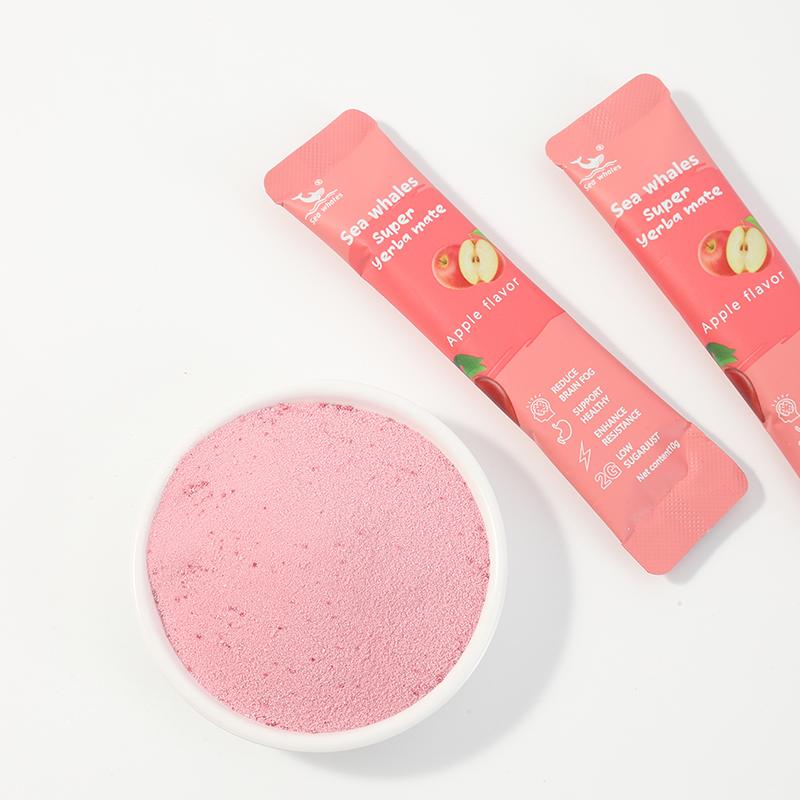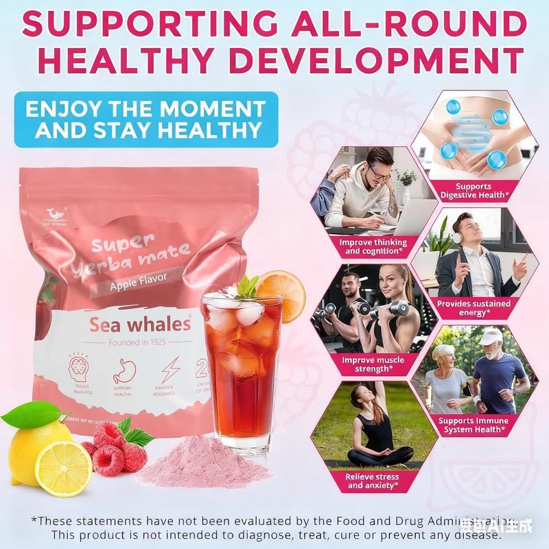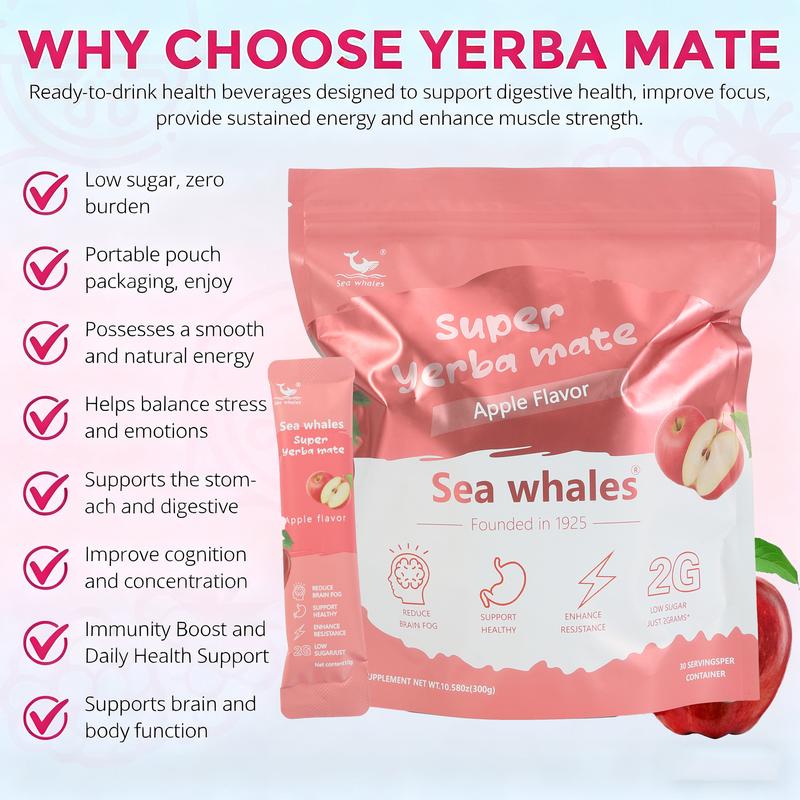 Sea Whales Super Yerba Mate Instant Tea Powder Apple Flavor 30 Packets Rich in Prebiotics & Probiotics Boost Energy Enhance Focus Gut Health Supplements