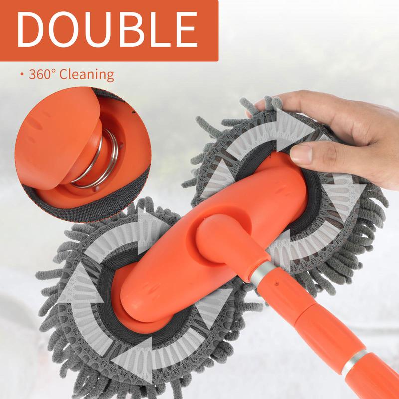LEIBOO 43'' Long handle car wash mop, Brush head 360° rotating,Detail cleaning,3X Fast Clean,soft chenille material,Avoid scratching,Suitable for Car, RV, Truck, SUV and Home cleaning - Car Wash Accessories! Labor Day Gift! Gifts for car lovers!