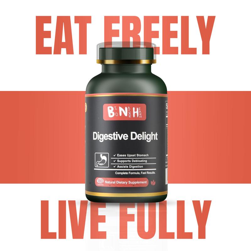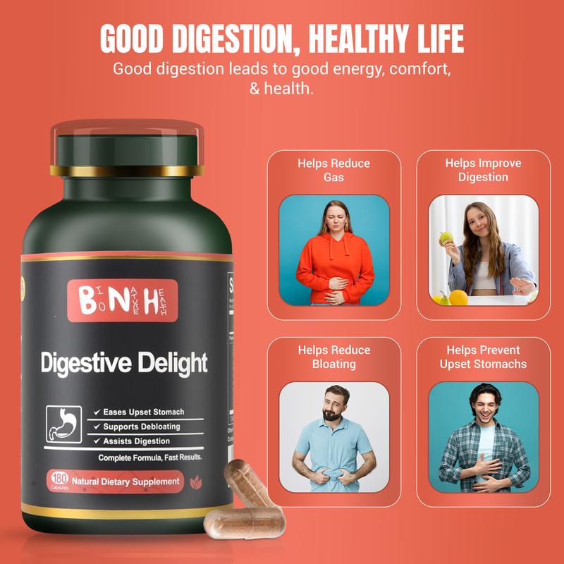 BNH Digestive Delight - Premium 100% Natural Herbal Gut Health , Rapid Bloating Relief, 180 Capsules, Healthcare , Made in USA