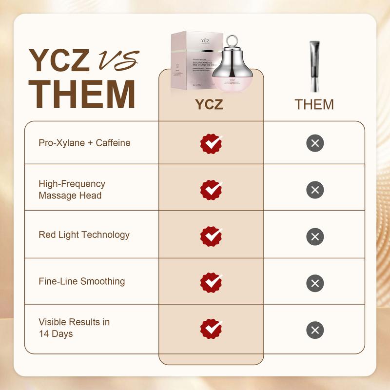 YCZ Electric Massage Eye Cream with Caffeine & Hyaluronic Acid for Dark Circles Firming Fine Lines Hydrating Moisturizing Radiant Skin Care with Red Light Micro-Vibration Head