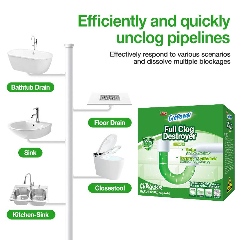 【Deals for You Days】Liby GREPOWER Pipe Drain Cleaner 100g x3 Packs x3 Boxes (9 Packs Total/900g) Professional-Grade Drain Opener for Kitchen Sinks Bathroom Drains - Rapidly Dissolves Hair Grease Clogs Eliminates Odors Non-Corrosive Bio-Enzyme Formula