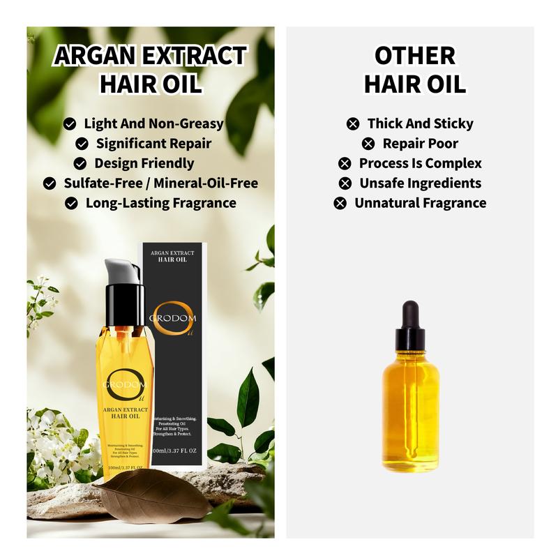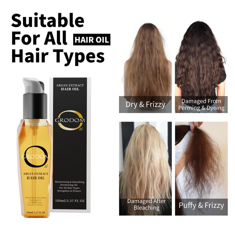 GRODOM Argan & Coconut Hair Oil 100ML - Lightweight Non-Greasy Serum for Instant Smooth Shine Reduces Hair Loss Supports Stronger Fuller Hair Sulfate Free Natural Haircare Anti Frizz Formula